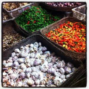 We started the morning with a walk through the narrow streets of Ubud to the market with the objective of exploring the vegetables and spices we would be using.