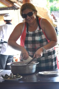 The satay we prepared at Bumi Bali cooking school was very different to those I know from Malaysia or Singapore. These ones- Bali Sate Lilit- are minced spiced meat which looks like it has been squashed onto a lemongrass stalk.