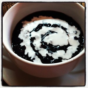 To be honest, by the time we got to the chicken and prawns, we were all so full that we could scarcely manage a taste, but heroically, we did. And even found room for a black rice, coconut pudding. Desserts, it seems, go into a different part of the tummy.