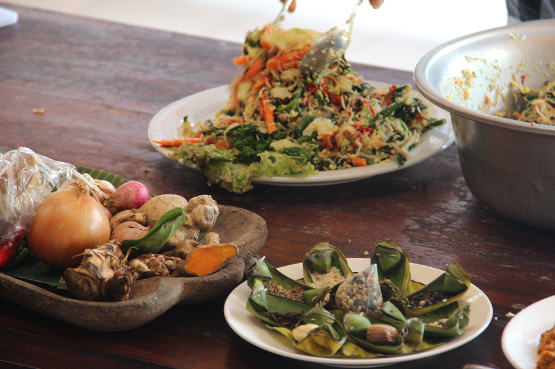 The Indonesian word for vegetables is “sayur”. Loosely translated this is mixed vegetables. This recipe is one that we prepared at the cooking class at Bumi Bali. The pictures were taken there as well.