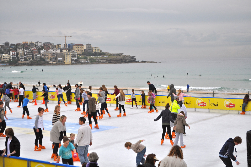 Regardless of the time of year, Bondi is great for people watching, so take a walk along the beachfront. Miss 14 is addicted to Bondi Rescue so had her eye out for lifesavers. During these school holidays a temporary ice rink had been set up.