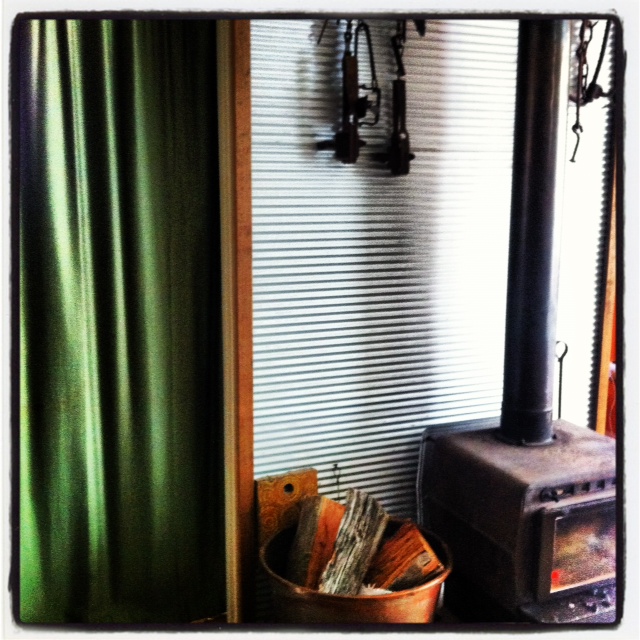 The cabin we stayed in was originally 2 sets of sleeping quarters. They have been joined together by a roof. Heavy curtains act as doors to the small bedrooms. We won’t talk about the beds. A pot belly stove kept us toasty warm.