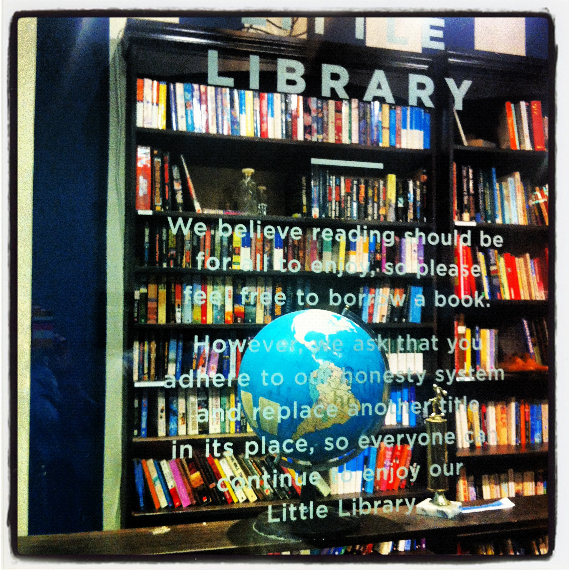 Elsewhere in the same mall is another community project- a small library. Operated on an honesty basis, the deal is you can take a book to read as long as you replace it with another. I love ideas like this.