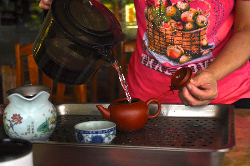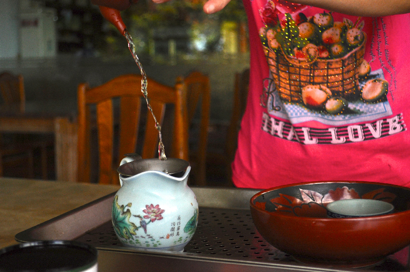 Up here in Maokong, they’ve perfected the art. There are a number of tea houses to choose from- all specialise in the high mountain oolong (that you don’t take with milk and sugar!) and all make rather a wonderful ritual- or production, depending on your viewpoint- out of the act of making and pouring a cup of tea.