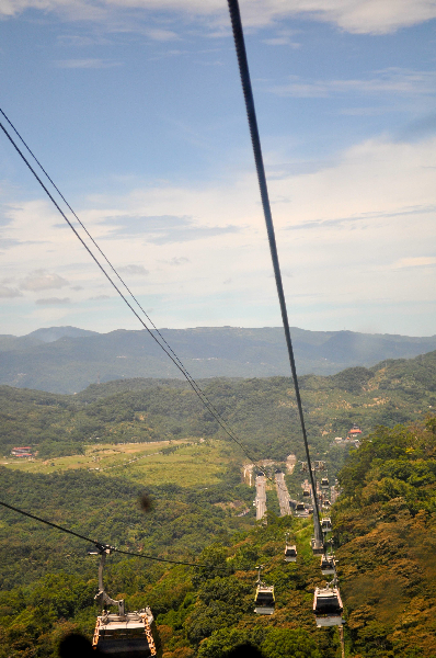 I’m on the Maokong Gondola, climbing into the mountains above Taipei.