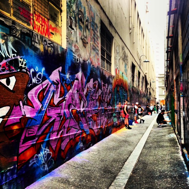 Yeah, I know it’s just glorified street art, and I know heaps of locals are sooooo over it, but I love it. It adds colour, expression, vibrancy and an urban edgy energy to what would otherwise be drab alleys.