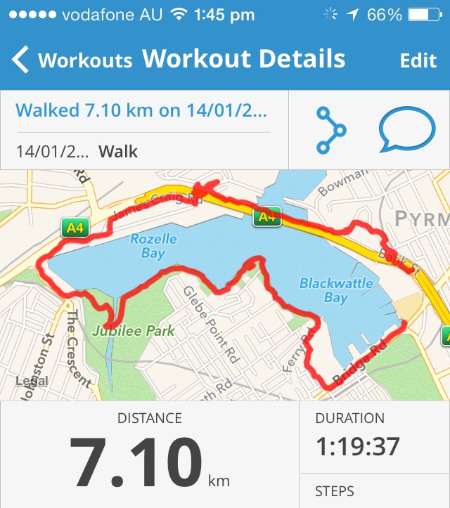 Around 5kms. Ignore what the map my run screenprint says- I reckon it’s faulty…besides, I googled it and lots of people say it’s faulty 🙂