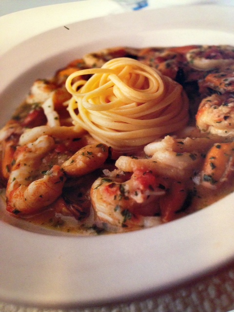 Ragout of seafood with fines herbes, white wine and linguine p100