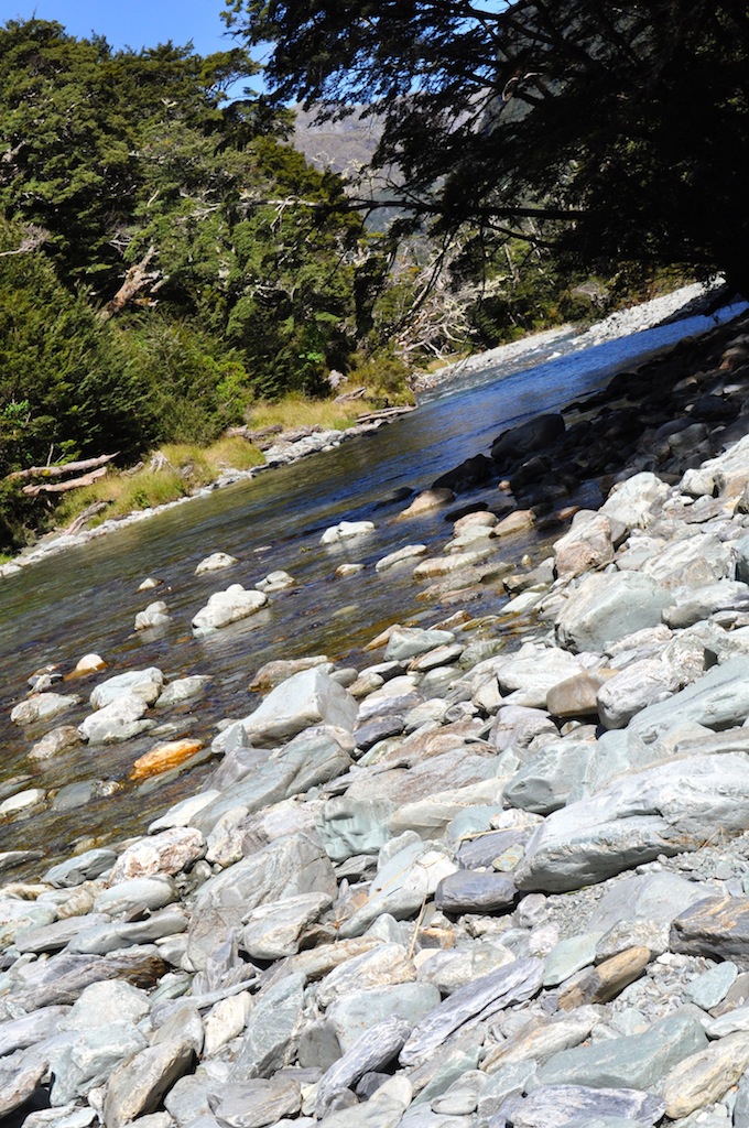 At the bottom of the nasty rocks was Routeburn Flats, and the vista we’d been spying since yesterday afternoon.