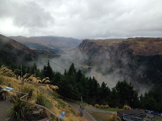 So, the gondola. Amazing views…usually. Today, while we were up there patiently waiting for our zip trek to start, a storm blew in. The wind came up, the rain came down and the clouds came in to meet us, completely obscuring all views.