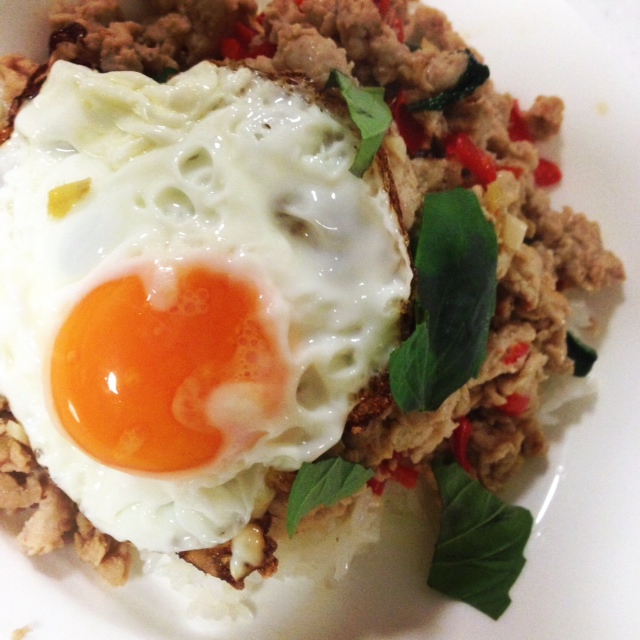 Essentially, then, this is stir fried minced chicken with holy basil and a fried egg on top. Ok?