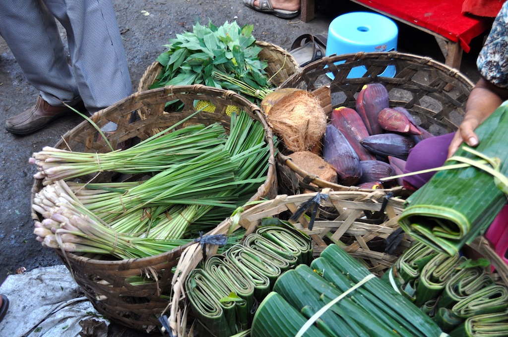 Then there’s things like banana flowers (for salads), banana or pandan leaves (for steaming food, containers, and plates), and coconut which finds itself in everything- in one form or another).