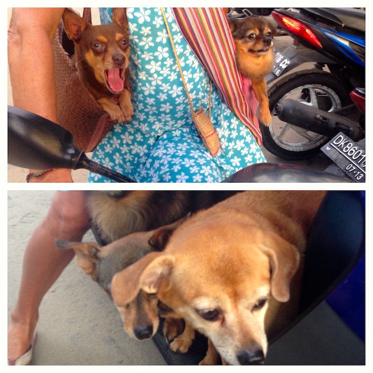 In Legian one night we saw three girls in short, tight skirts squeeze onto a single bike- the one with the most room to move acting as driver with the other two sitting side saddle- each facing opposite ways.