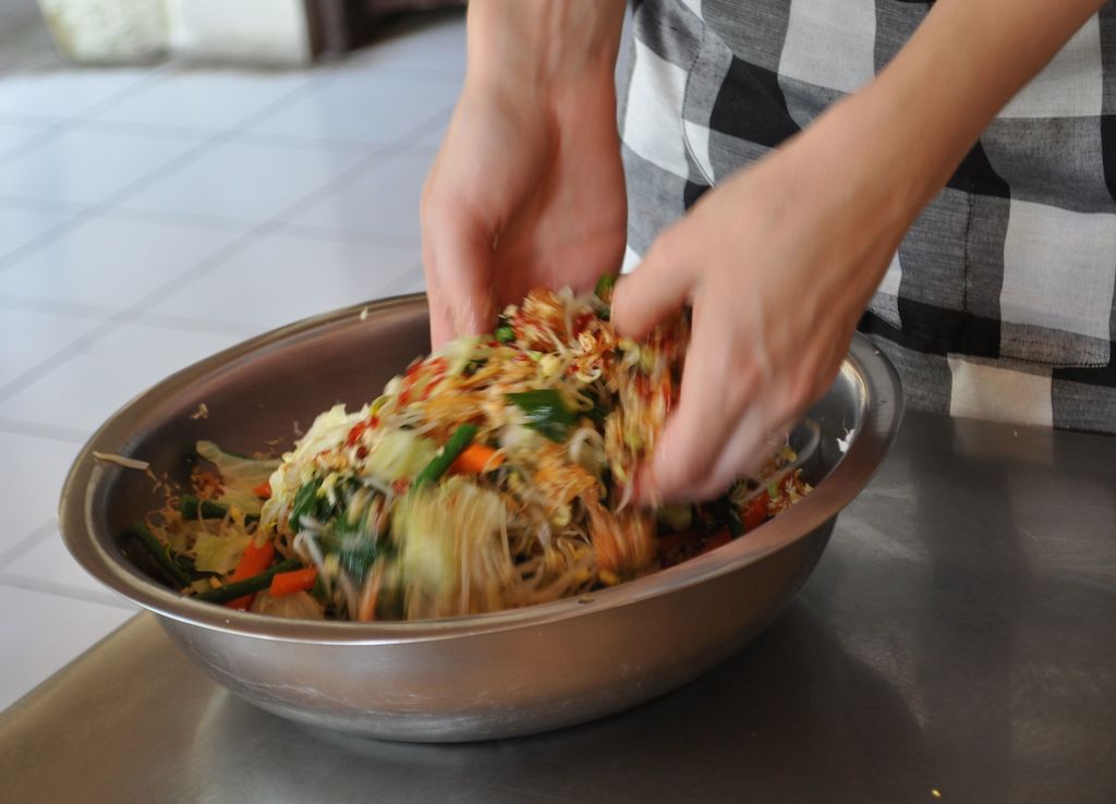 We prepared this in last weeks cooking class at Bumi Bali. The basics of the recipe are courtesy of them, and the photos are also from that class. If you’re ever in Ubud, I can absolutely recommend it!