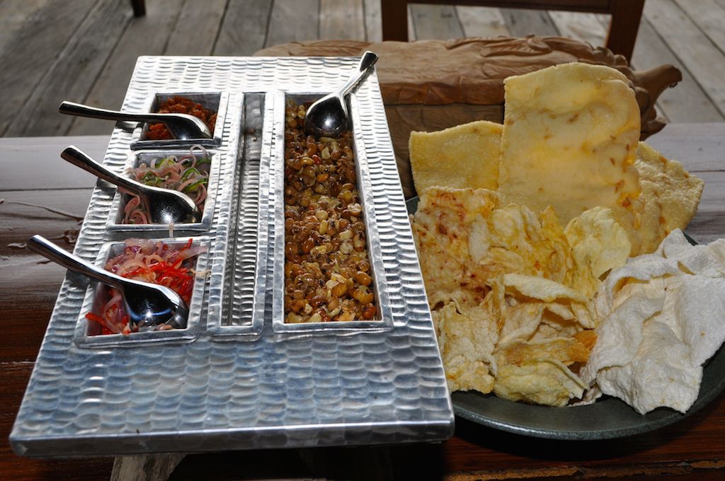 We had each of these also at Bali Asli– the kangkung in our megibung, and the lemongrass and shallots with the crackers beforehand. If memory serves me correctly, I’m pretty sure the tomato sambal was in that box as well…