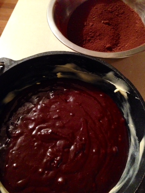 Obviously, being glamping, we don’t have mixers or beaters or any fancy measuring equipment, so I used mugs. I also took with me some super good Dutch cocoa, and used heaped tablespoons- just to ramp up the decadence of the whole thing.