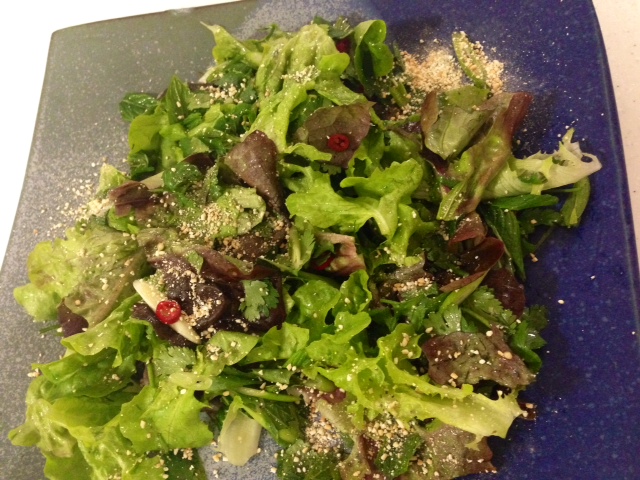 - Remove the chilli from the vinegar (you can save the vinegar for something else) and mix all the dressing ingredients together.