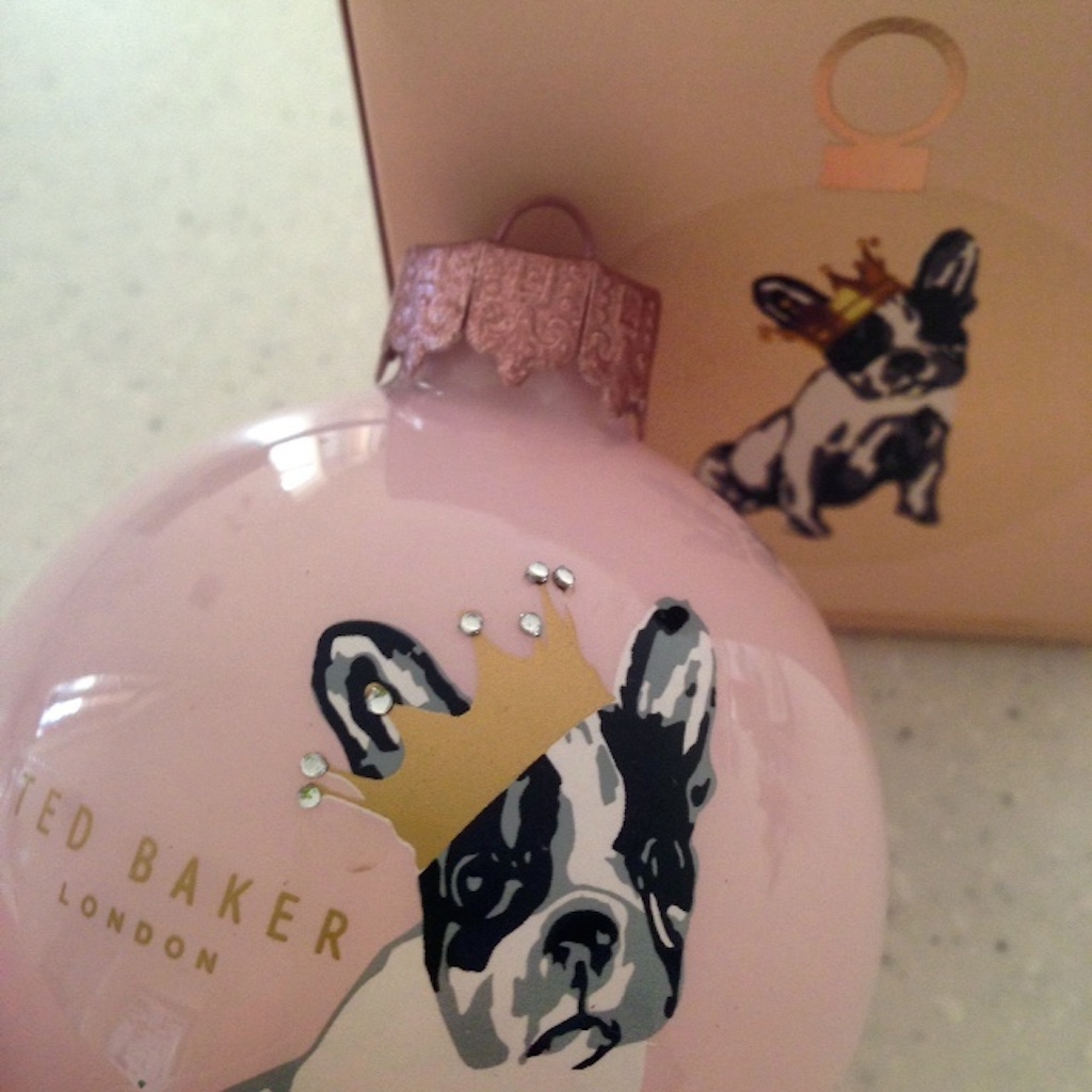 This years bauble is below- it’s a posh one that Miss 16 and I bought when we were in Melbourne the other week. It’s pink, it’s delicate, it has bling, and it features a dog. What more could you want in an ornament?