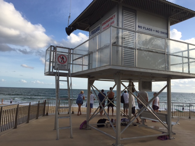 By the time the sun is dipping, the lifeguards are out doing their training (as an aside, worth the watch).