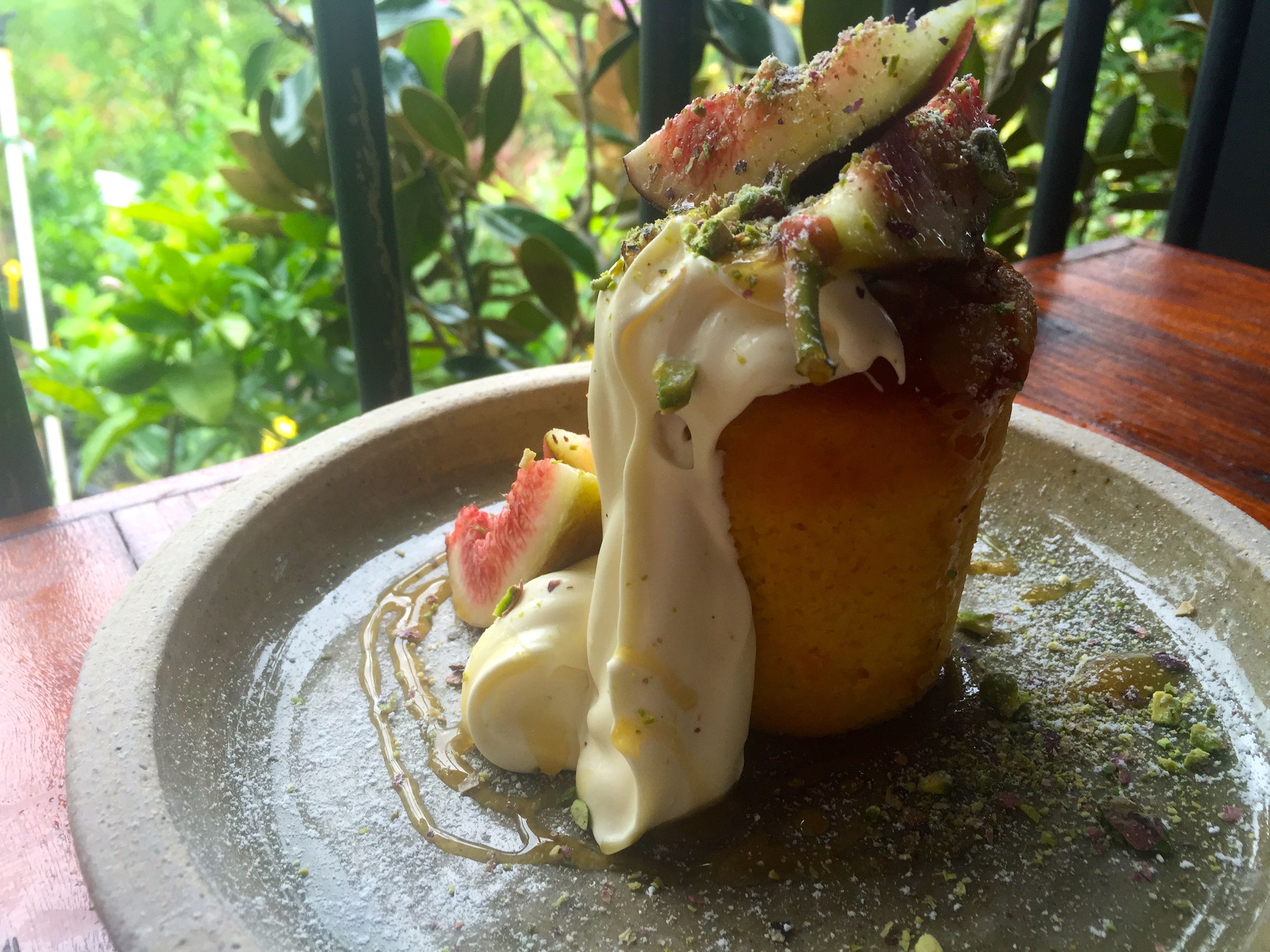 Mish went for the orange and almond syrup cake with blossom honey and pistachios.