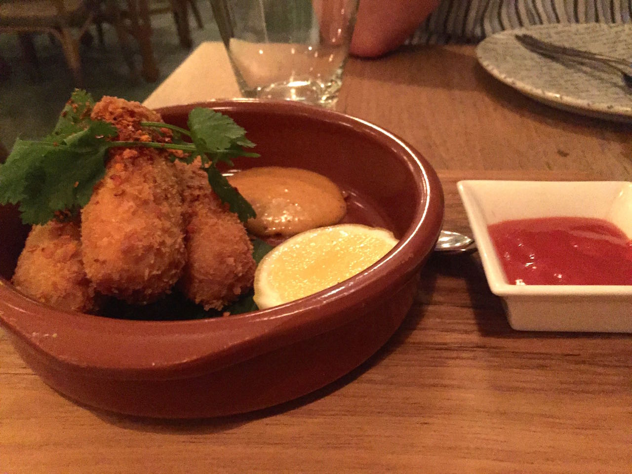 Dutch Indonesian salted cod kroket with chilli mayonnaise and chilli sambal