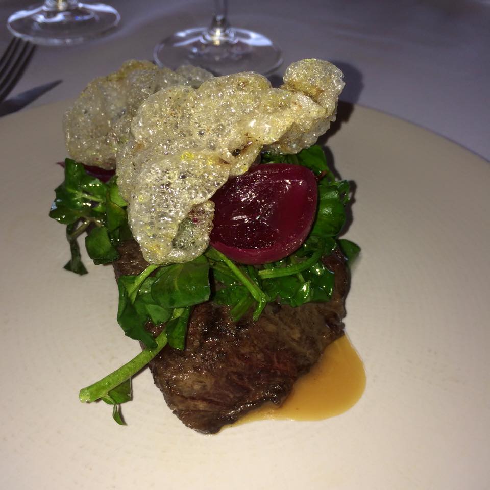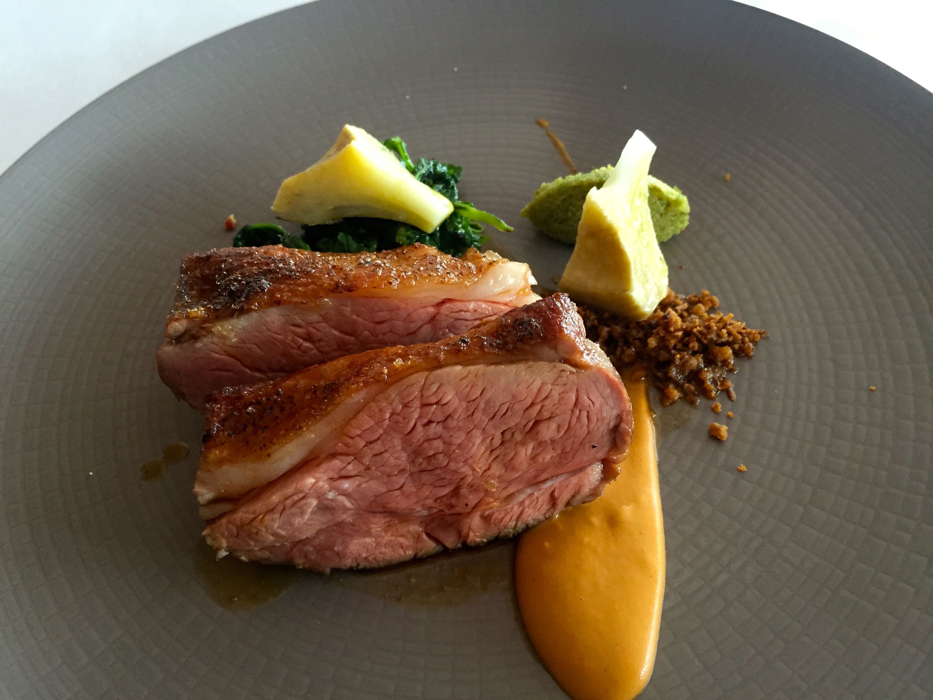 I went for lamb loin with globe artichokes, harissa and green olives.