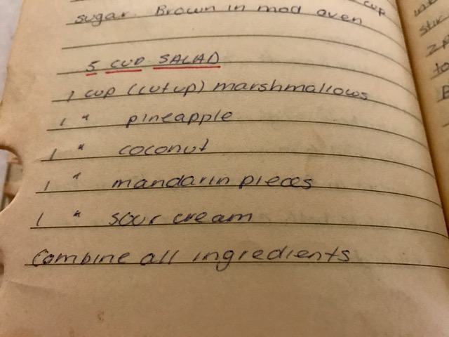 5cup-salad January 26, 2017 Ambrosia Salad 640 × 480 From my old handwritten recipe book – how neat was my writing?