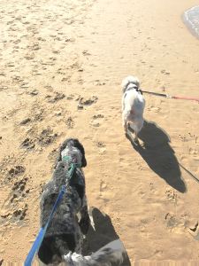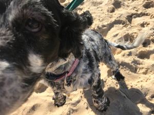 Ballingers Beach at Currimundi. It’s a leash free area and was full of people with their pooches last Saturday. It was also Adventure Spaniel’s first walk on sand. She thought it was great until the wave thing happened.