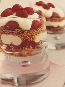 All you need to do when you’re ready for dessert is layer it all together and serve it with a wee dram of whisky on the side. Yum. Sorry, no pic – they were eaten too quickly, but below is what they would have looked like if they were made with fresh raspberries with whisky – instead of cooked strawberries with grand marnier.