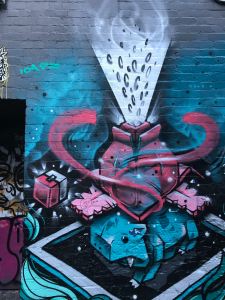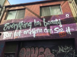 I’m not into tagging – the disrespectful, dick and balls that get left on bare spaces by the completely unimaginative – but the seriously creative, inspirational, light the city up work that can transform a brick wall or a laneway into a masterpiece.