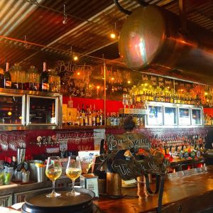 Last trip we tried Madame Brussels – and as an experience, you probably should too. Imagine every single cliché you could think of around a garden party or tennis party. Add some more pink, an arbour or three with fake wisteria, a suggestive menu full of punches, even more pink, and some short tennis skirts, and you could be close to imagining Madame Brussels.