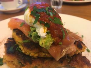 I prefer Journal Canteen (up the stairs in the same building), but it’s closed on the weekend. If you’re there during the week, try it out – it’s very retro chic and their smashed avo with dukkah and feta is fabulous. This time I had the zucchini and corn fritters.