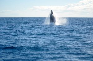 We’re on Whale One, about 11- 12 miles off the coast of Mooloolaba and we’re excited. In fact, even the crew is excited. Today is a good day – there are plenty of whales about and they’re having fun.