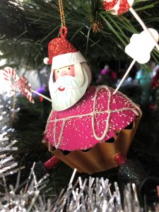 Over the years she’s chosen the cupcake Santa, the Surfing Santa, the parachuting Santa and a variety of bells and baubles. Her favourite is still the Ted Baker very glam ball we bought in Melbourne in 2014.