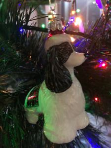 The year Kali, Adventure Spaniel, was still quite puppyish, we hung bells on the bottom row so we’d know when she’d gone under the tree to steal presents. She never chewed anything, just carried them away – one by one – to stockpile them in her favourite hiding spot.