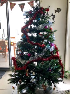 In 2017 we went for a dolphin and sea turtle to remind us that we’d moved to Queensland. The theme was continued this year with a jellyfish and seahorse. We also threw financial caution to the wind this year and blew nearly $20 on the Villeroy & Boch angel in the top pic. The tinsel and the beads have all come from discount stores. At Christmas more definitely is more.