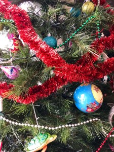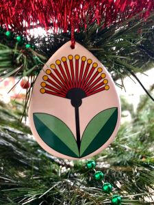 There are the ornaments that remind us of people and places. The pandas I brought home from Hong Kong when I was there doing a relocation for work (2008), the pottery bird from the handmade markets in Perth when I was there doing another relocation for work (2009), and the pohutukawa my friend brought over from NZ. Whenever I hang that – and another I’ve bought since – I think of her and my “adopted” country.