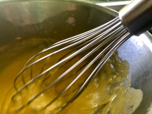 Okay, onto the recipe – which does involve whisking by hand – which really doesn’t hurt you every now and again – and is much quicker on the clean-up. Plus, it tasted really, and I mean really, good. Groan out loud good. Too much information?