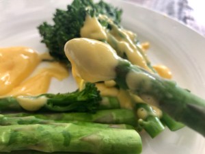 Despite loving the humble bennie, and despite believing that there is very little in the culinary world that is better than dunking a spear of asparagus into fresh hollandaise sauce – other than perhaps dunking a spear of asparagus into a soft boiled egg – I’ve somehow managed to avoid attempting to make the real thing. I think it’s all that incessant whisking that has turned me off. It’s certainly not the butter.