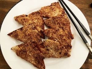 There’s something so comforting about the golden crunch of a good prawn toast – and these were good. I sort of used this recipe and they turned out beautifully (the photo does them no credit at all). To make dinner even more like a Chinese takeaway we also had cut up segments of orange and fortune cookies to finish off with.