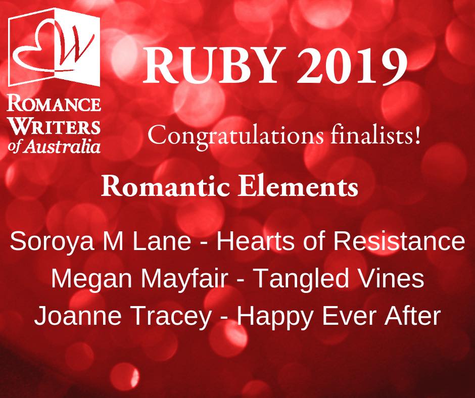 This was announced yesterday – I’m a finalist in the Romance Writers of Australia (RWA) Ruby Awards in the Romantic Elements category.