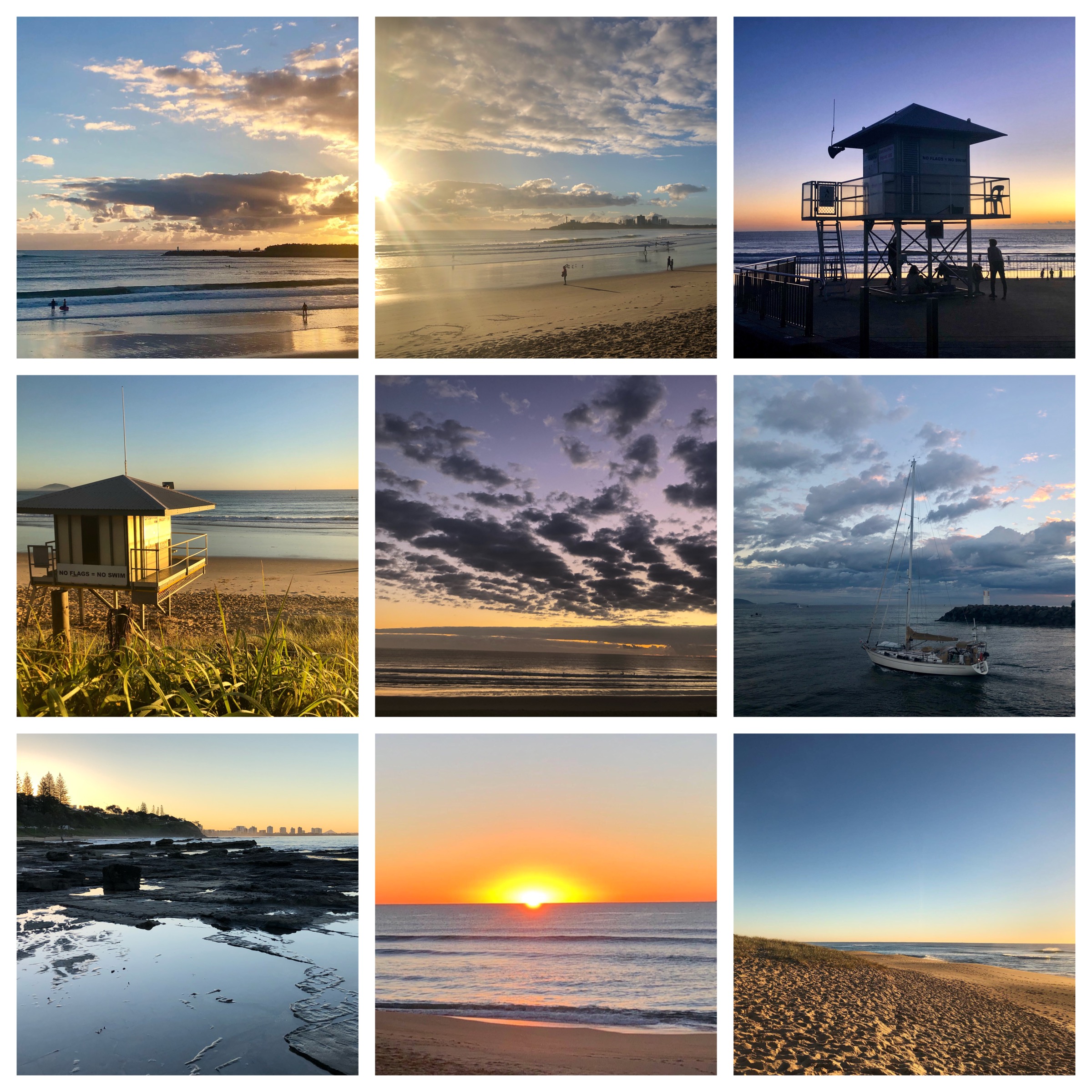 Of course. This week, just to mix things up, we took a different route on Friday morning and watched the sun come up over the ocean at Kawana Beach.