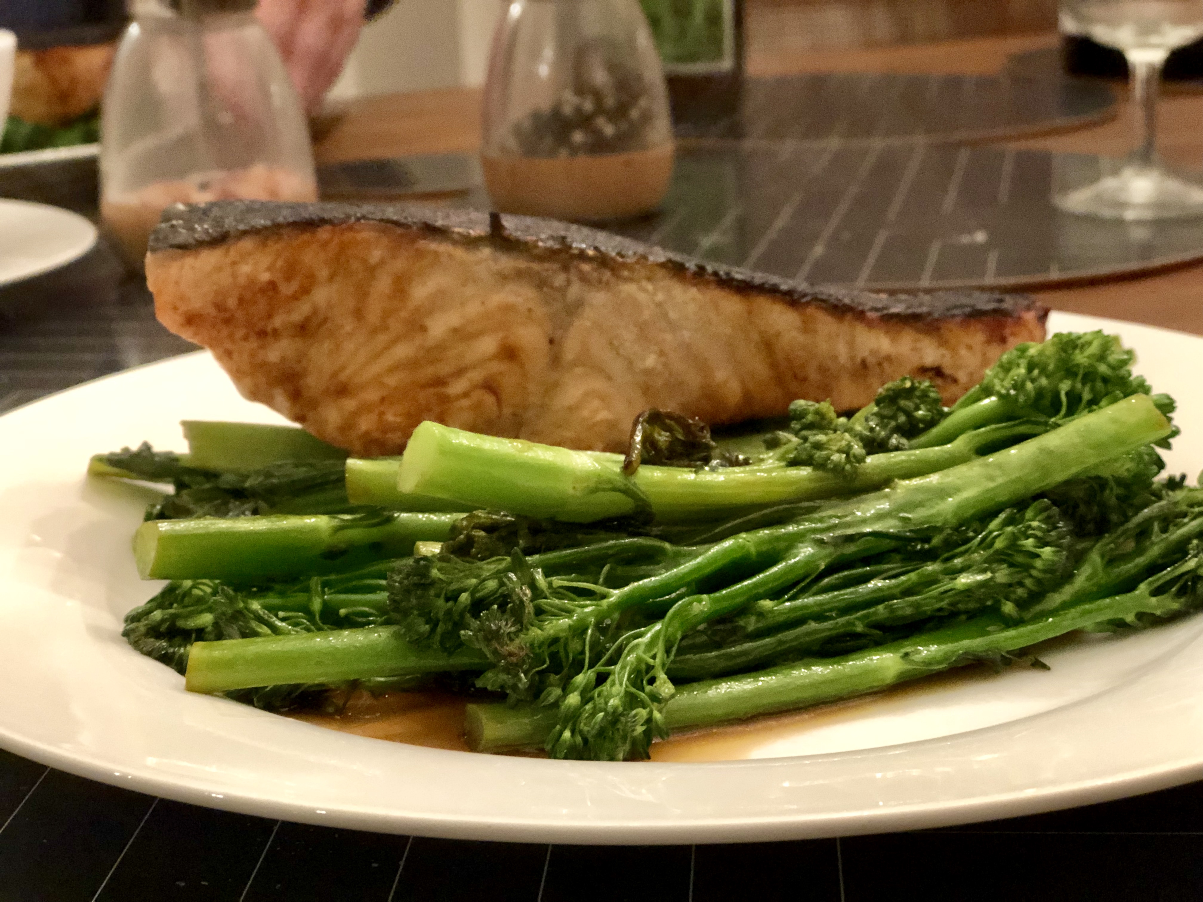 My healthy recipe of the week comes from Ella Risbridger’s, “Midnight Chicken“. It’s her “Stuck in a Bookshop Salmon & Sticky Rice” without the sticky rice and with broccolini instead.