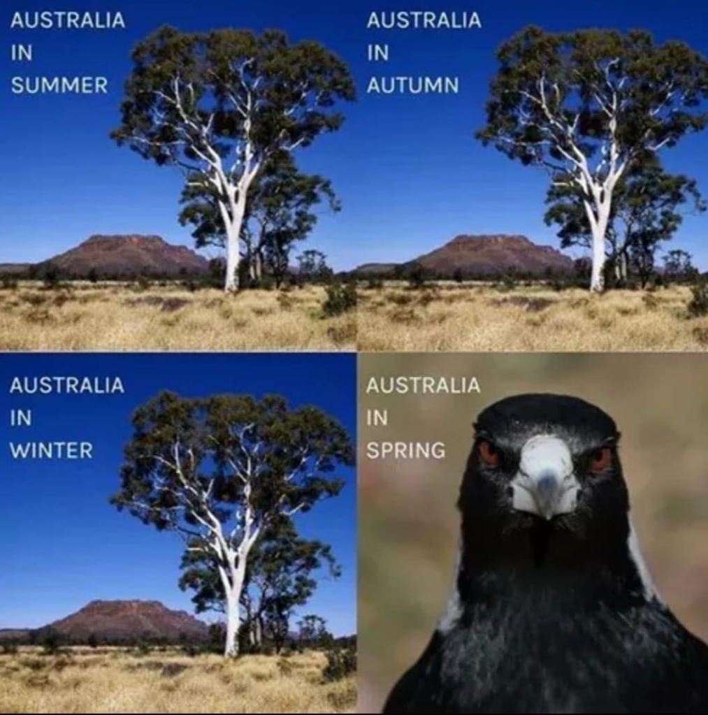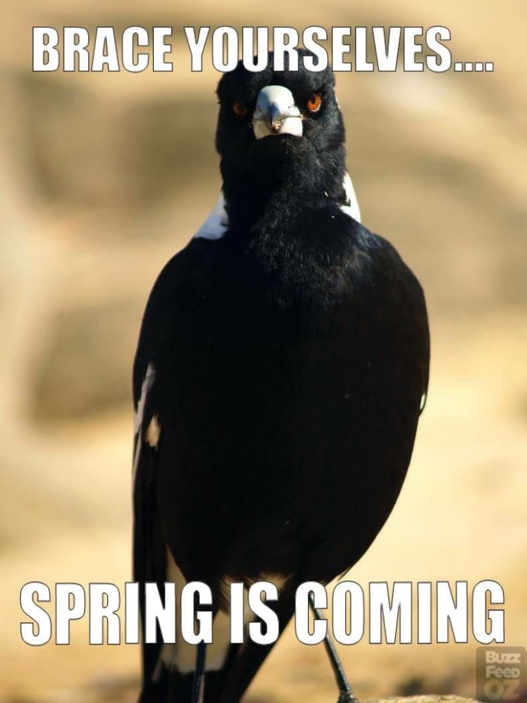 I love magpies and butcher birds but that doesn’t mean that I can’t giggle at these memes – and that’s not to take away from the damage that these guys can do. For those who get swooped and who have been injured it’s serious stuff. Apologies to those who don’t like maggies as much as I do.
