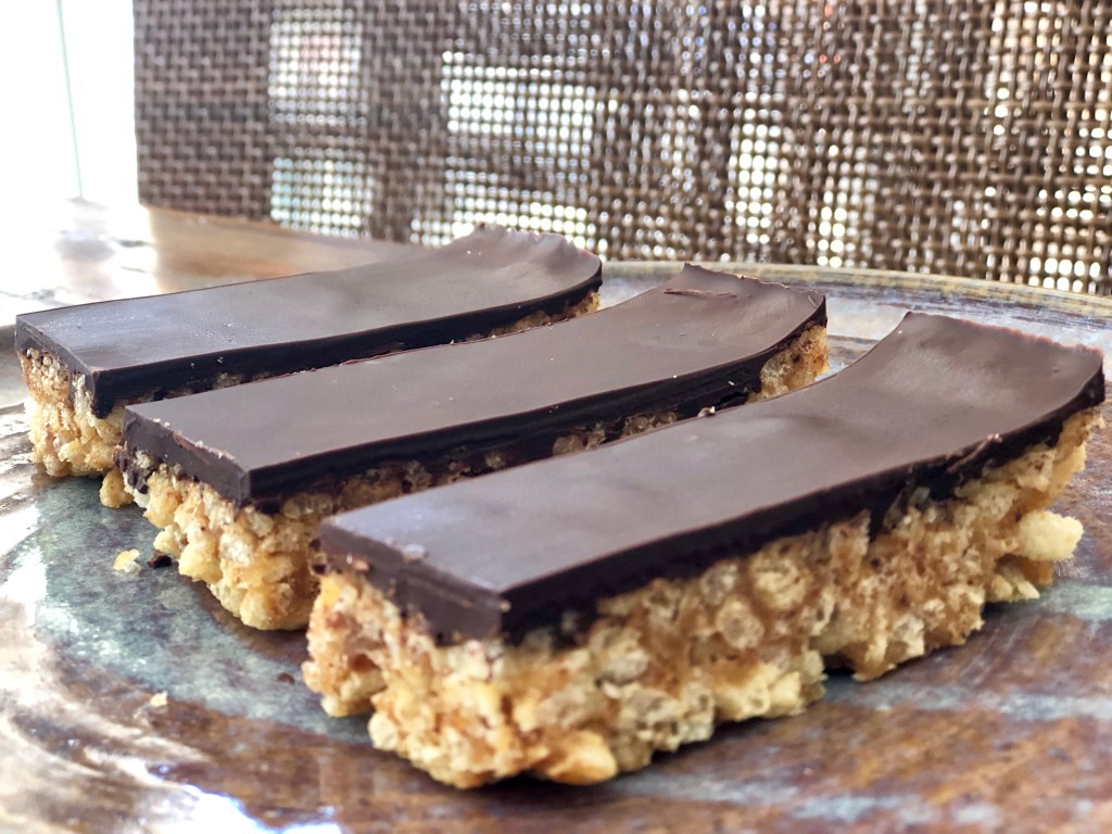 Peanut Butter Chocolate Crackle slice. It’s made with dates, coconut oil, honey and peanut butter and, according to Sarah, is good. Who’d have thought it? Recipe on the way.