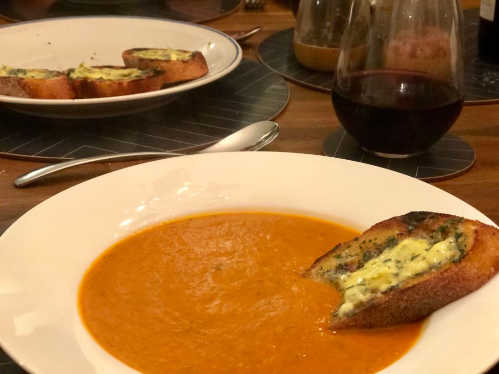 It’s such an easy soup Bella & the garlic bread is roasted garlic with basil and butter. Sooooo yummy.