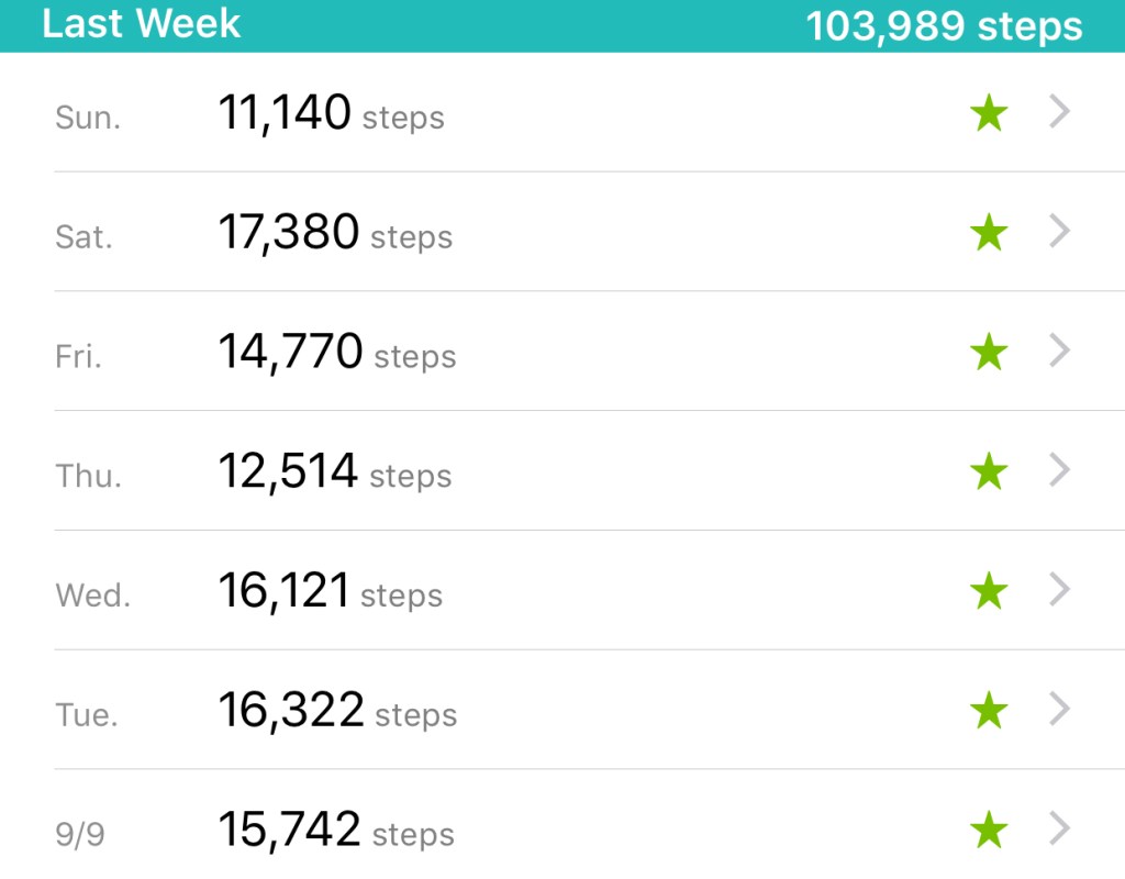 Another big week on the stepping front which, given I was in the car for 5 hours on Friday and Sunday, took some effort. Being in Sydney this week will bring these numbers down quite a bit.