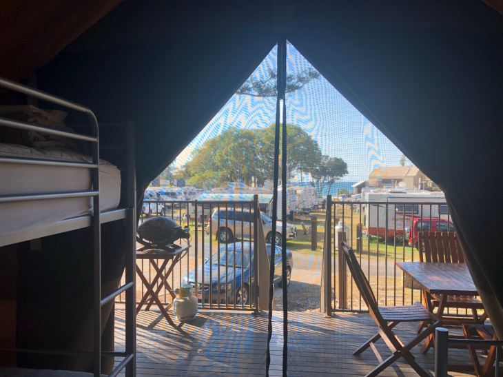 While this is a caravan park it also has beach-side cabins, luxury beach cabins, and clamping tents. And it’s all beachfront.