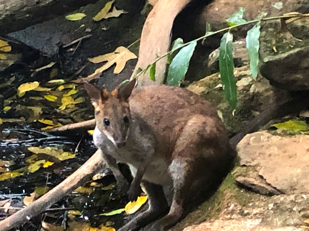 After lunch we took a little wander through the walking tracks, checked out a python curled up beside a rock (safely from the other side of the glass), said hello to some friendly pademelons (sort of like a little wallaby) and marvelled at the exhibition of bird paintings in the gallery.