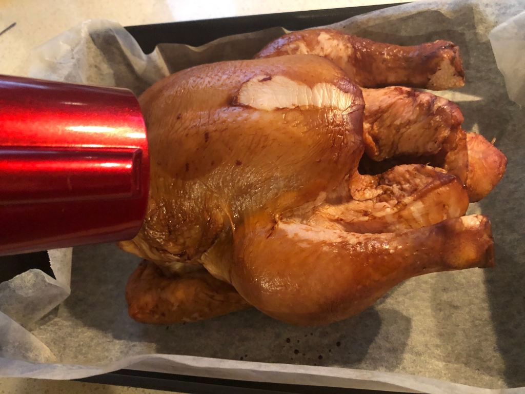 This week’s theme was Chinese and here I am blow-drying the chicken. It makes the skin crispy. And, before you ask, I only do it for Shandong chicken…